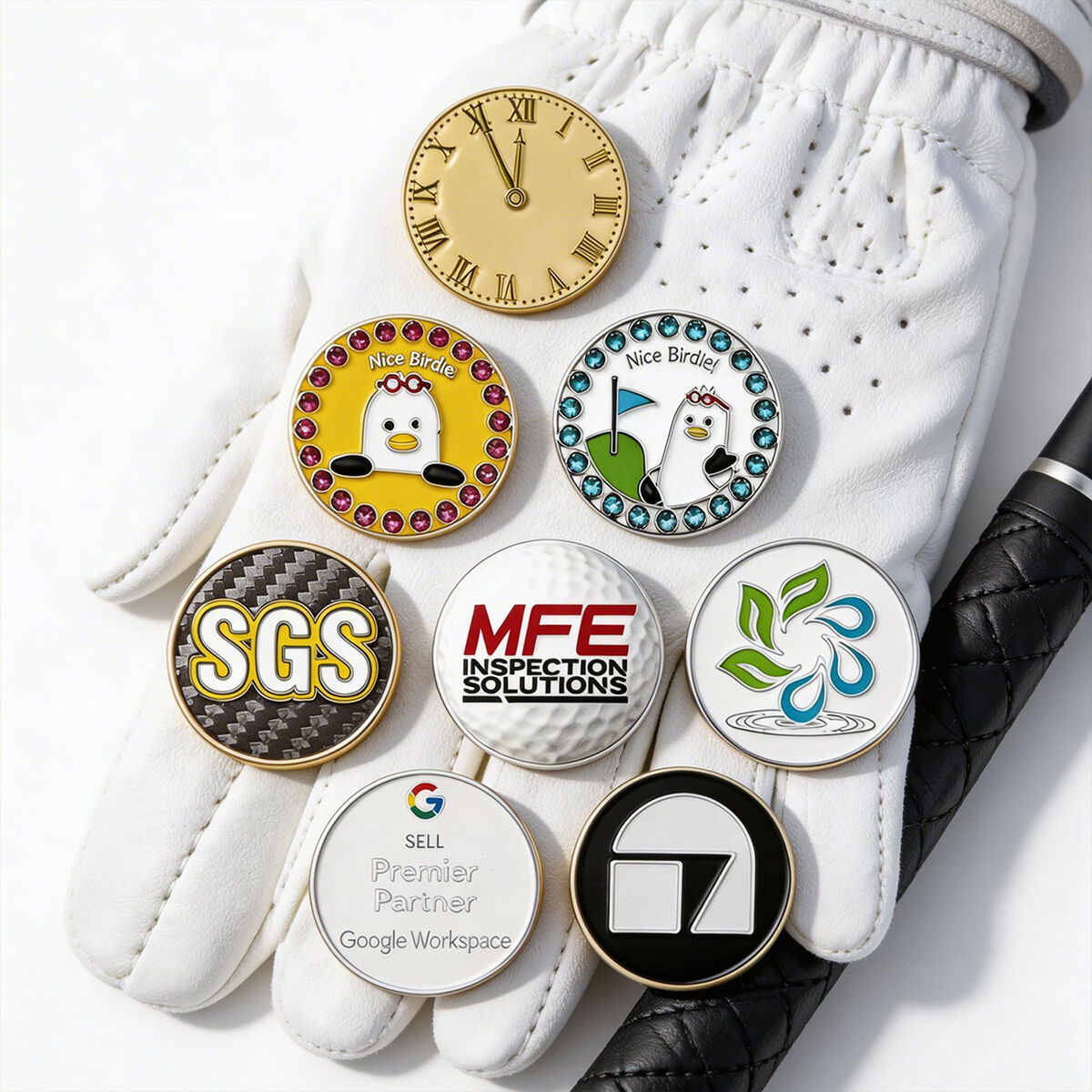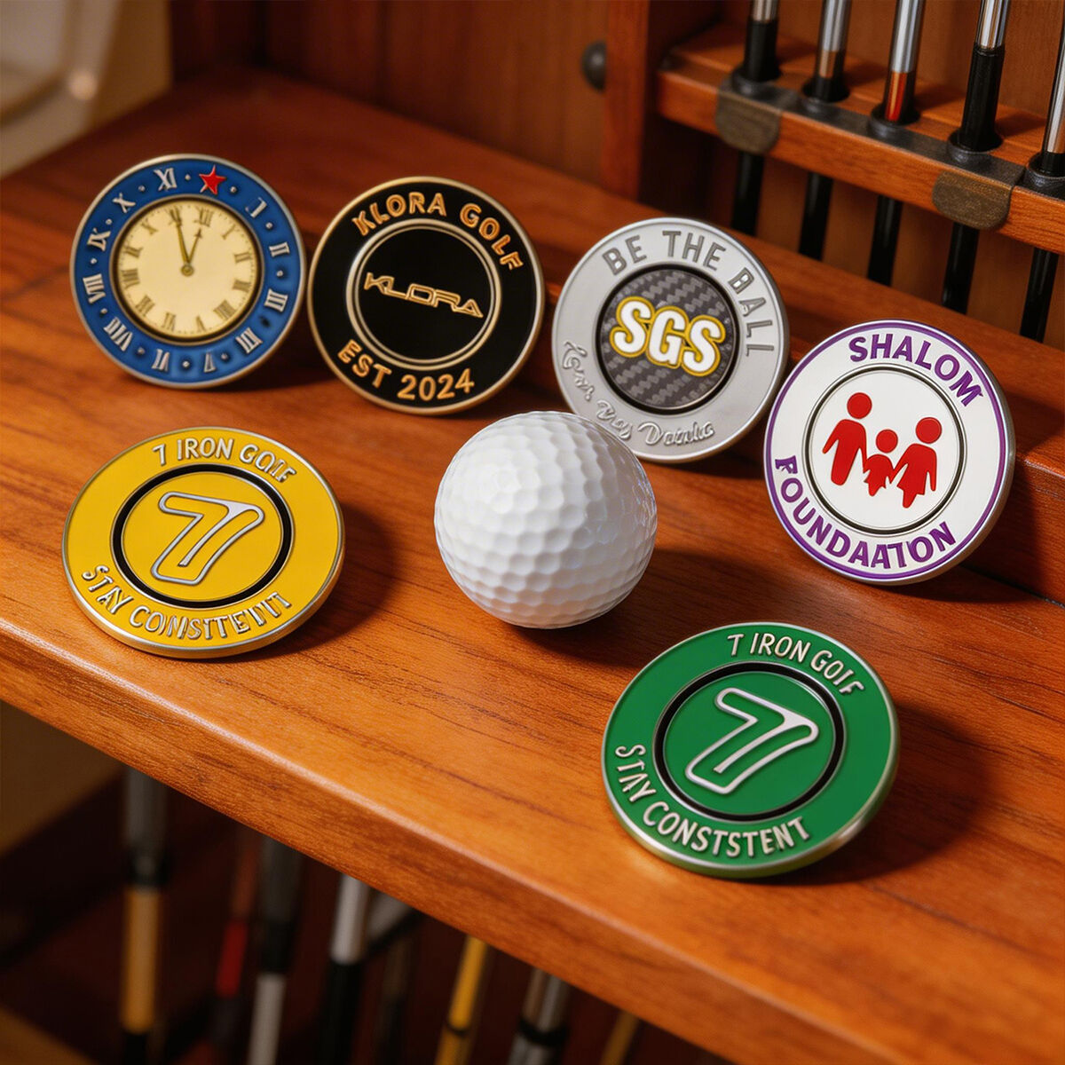 Standard Ball Marker Coins.jpg Divot Tool with Bottle Opener.jpg Golf Ball Marker Hat Clips.jpg Ball Markers with Divot Tools.jpg
